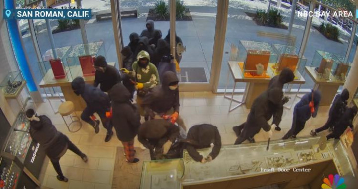[环球网报道]据美国全国广播公司(NBC)25日报道,美国加利福尼亚州旧金山湾区一家珠宝店当地时间22日下午遭遇打砸抢事件:大约20名蒙面持械暴徒闯入该珠宝店,砸开陈列柜盗取珠宝,部分劫匪携带枪支。